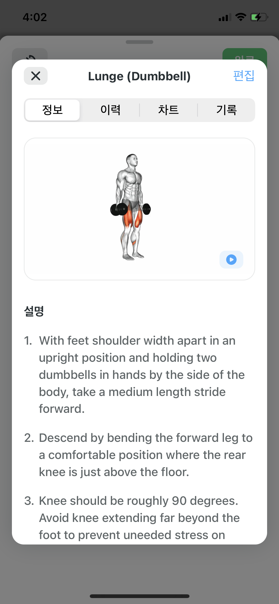 아래처럼 운동을 할 때 어떻게 해야 할지 모르겠다면, 그 운동의 동영상과 어디에 힘이 들어가는지에 대한 설명도 나와있어, 참고하고 운동을 할 수 있어 좋습니다! (설명은 한국어가 지원이 안 되는 것 같네요ㅜㅜ)