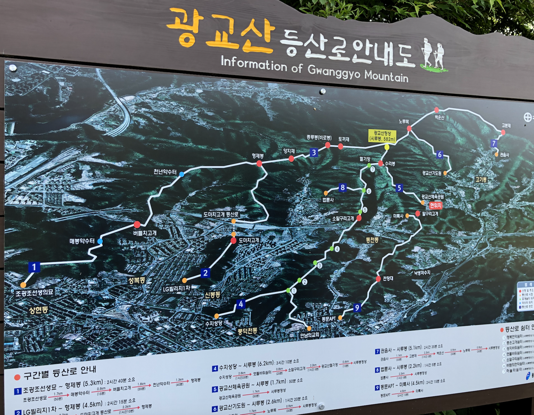 광교산은 경기도 용인시에 다양한 출발 지점이 있는 나름 큰 산입니다. 무려 시작점이 9개 이더라고요? 저는 광교산 시루봉 정상까지를 목표로 하고 출발하였습니다!