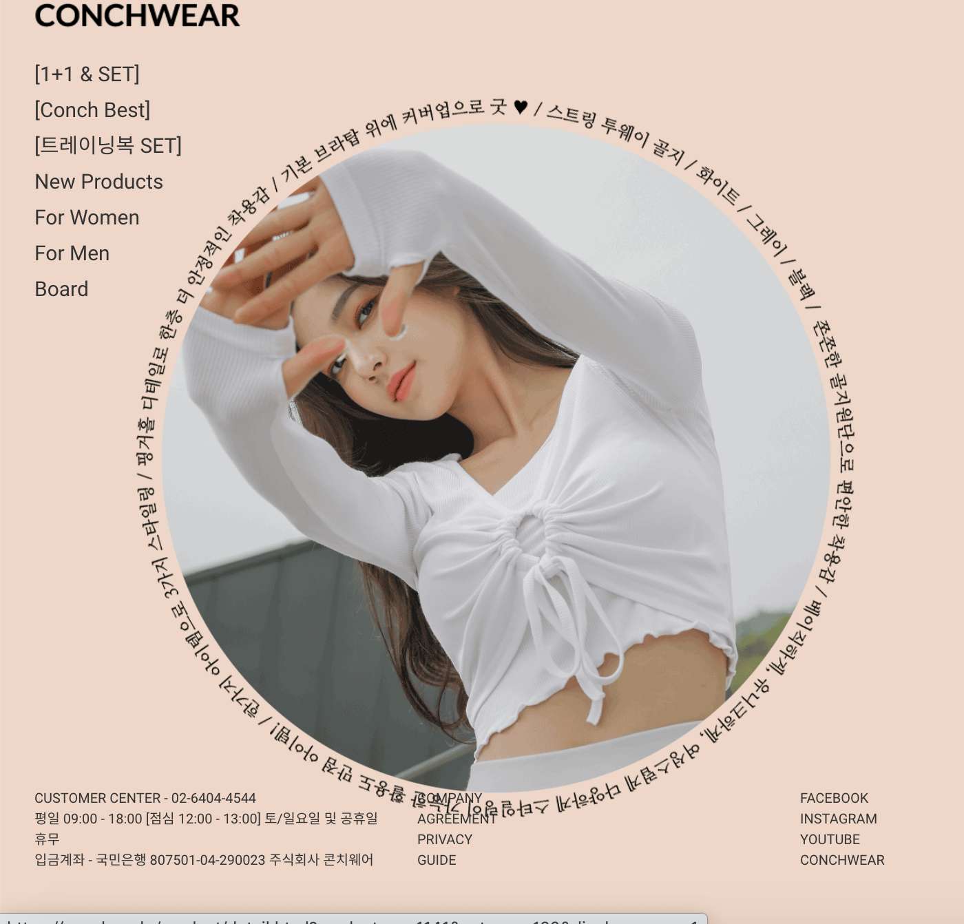 처음으로 소개할 브랜드는 콘치 웨어입니다! 여기는 정말 저만 알고 싶은 브랜드인데! 데일리용과 운동할 때 두 경우 모두 입을 수 있는 디자인이 많아, 제가 선호하고 있습니다. 콘치 웨어는 유니크한 상의 디자인이 많이 있고 저는 주로 상의를 구매하고 있습니다.